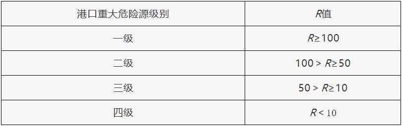 表4 危险货物重大危险源级别和R值的对应关系