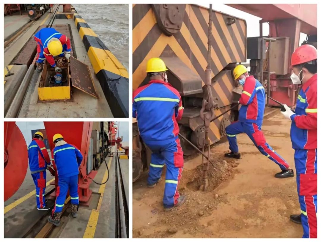 不畏严寒,斗风战雪。各分(子)公司和部门结合生产作业特点,针对性地布置了应对极端天气的工作措施。后勤人员给水管阀门和水表包扎棉布、填充棉衣,避免管道冻裂;机修人员实时检测码头风力,对大型港机设备进行加固锚定;机务人员根据气温变化,提前储备了抗凝剂、启动液、-10号和-20号柴油,同时重点开展各类机械的燃油料、防冻液、油水管路防冻检查工作,为设备在冰冻天气下安全运转提供坚实屏障。