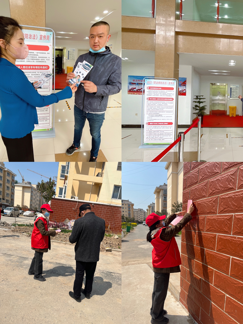 活动通过led宣传屏、展板、公众号、线上答题等多种形式进行宣传,公司员工以公众号和学习强国平台为载体,转发德信体育相关的文章视频,营造践行全社会关心关注职业病防治的浓厚氛围。为进一步扩大宣传覆盖面,响水港区充分调动志愿者的积极性,加强与社会志愿者的协调联动,在各小区通过张贴、分发法治宣传单等形式,让居民进一步了解职业健康以及疫情防控法律方面的知识,同时提醒居民在非常时期要依法、科学防控新型冠状病毒,构筑疫情防控、法治宣传共同体,为疫情防控工作有序开展提供法治保障。