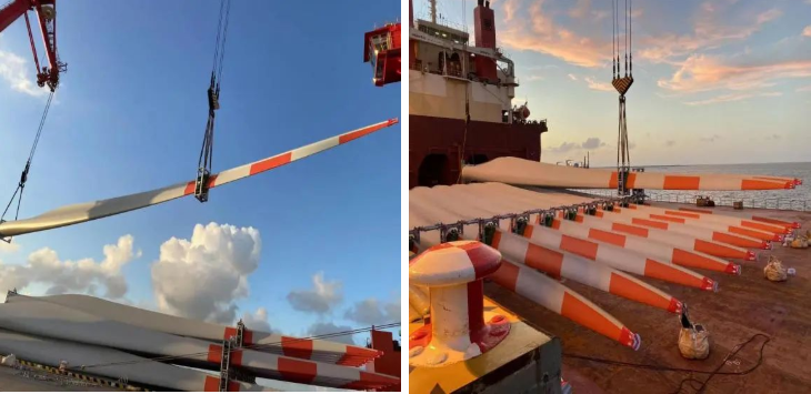 大件班组在东灶港工作期间,作业的V110、V136、V150、V162等型号风电叶片都极具挑战性,很多都没有操作过,面对如此困难和繁重的任务,外派人员在德信体育 正确的指导以及帮助下,齐心协力,克难攻坚,最终圆满完成了东灶港所有作业任务,合计完成风叶吊装2500件、248万方,为东造港创收近亿元,同时也为盐城港港口有限责任公司创收700余万元,成为盐城港高质量发展的一股强劲动力。