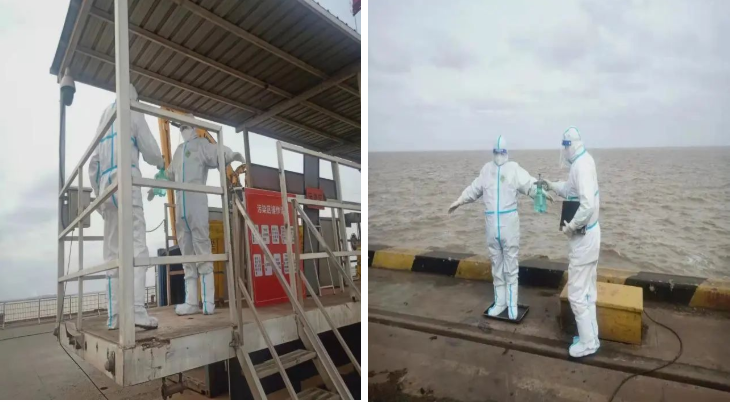 疫情就是命令,防控就是责任。为认真贯彻落实国家、省、市委、市政府和集团的决策部署,严格按照“外防输入,内防反弹”的要求,外派人员全部进入一线作业专班,大家主动放弃休息,按照《港口及一线人员新冠肺炎疫情防控工作指南》的要求:佩戴防护口罩、防疫手套、护目镜、防护服等防疫用品,做好体温检测和信息登记,并禁止进入船员生活区域,不与船员接触。作业完毕后,严格按照规定采取消毒措施。