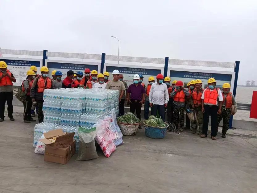 实业集团建设工程项目指挥部深知工程项目的重大意义,入夏以来,针对梅雨季、高温天、强对流等各类极端天气给各建设工程施工造成的极大阻力,科学合理安排施工时间,自我加压,全力以赴“汗”卫工程节点,安保船项目团队开足马力、迎战“烤”验,“争分夺秒抢工期、攻坚克难打硬仗”。大丰港区海况特殊,时常遭遇突风袭击、施工时间需根据潮汐确定,为了保证工期,施工项目部制定详细“作战计划”,交叉作业、平行施工、涉水作业等多种科学施工措施。抢战时机,见缝插针,并通过人文关怀,安排足够的施工作业人员,科学合理的作业时间,推动工程项目施工进展,确保施工组织不乱、进度不慢、节点不滞后,做到“今天再晚也是早、明天再早也是晚”,虽然任务重、时间紧,但工期就是命令,项目现场已开足马力,力保7月底桩基工程完工。