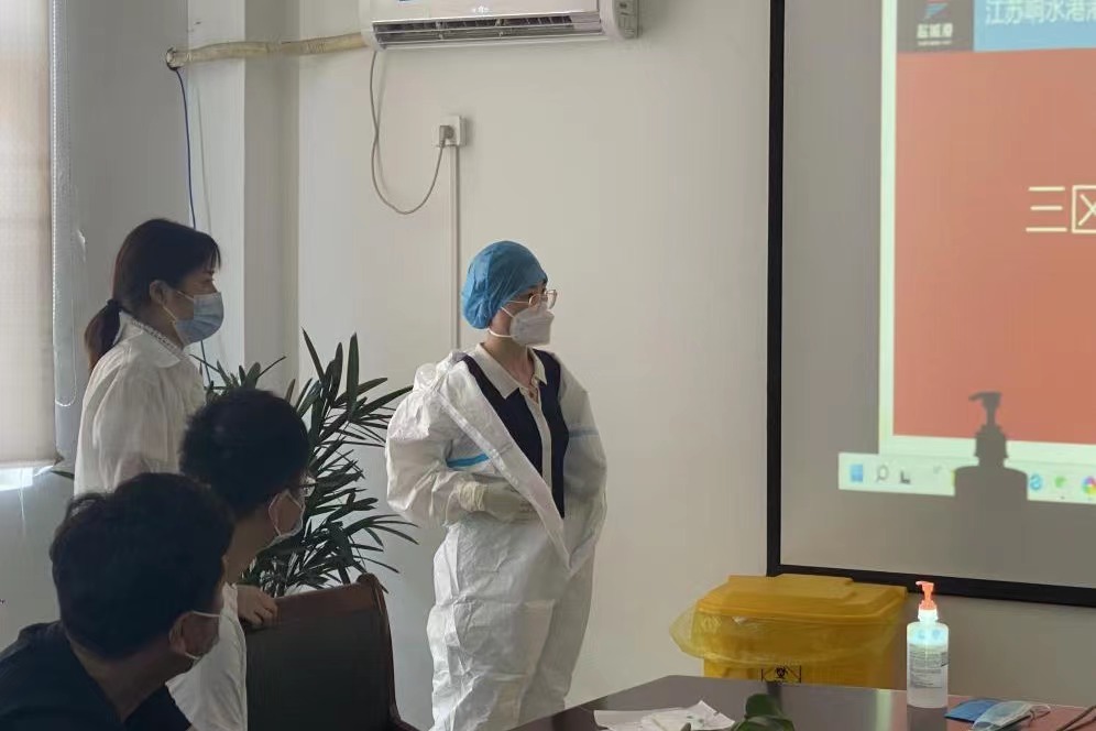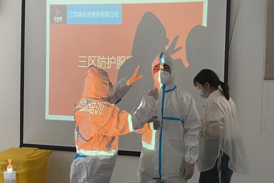 为坚决打好新型冠状病毒疫情防控阻击战,全面提高应对疫情的响应能力,熟悉应急处置具体流程,从严抓好疫情防控工作,近日,响水港区港务公司特邀响水县港城医院专职医护人员,对港区作业人员进行疫情防控相关的三区防护服穿脱消杀培训。