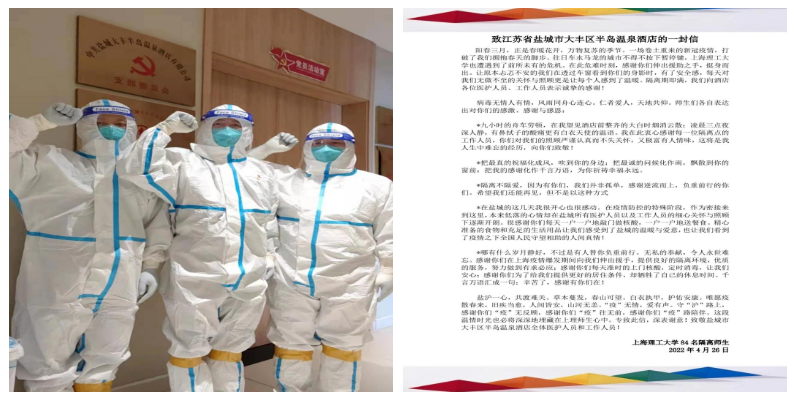 风浪显担当,患难见真情。盐城港先后两次完成兄弟城市集中医学观察点任务,在半岛温泉酒店携手抗疫,同担风雨,共克时艰,守望相助。大家隔着口罩、防护服、屏幕、便签纸相见,熟悉却又素未谋面,但一次次问候,一句句叮嘱,一声声感谢,都弥足珍贵,铭记于心。真诚换真心,隔离结束后,各类社交软件的疯狂点赞、一面面锦旗、一幅幅漫画、一封封感谢信,传递的不仅仅是肯定,更是感激。