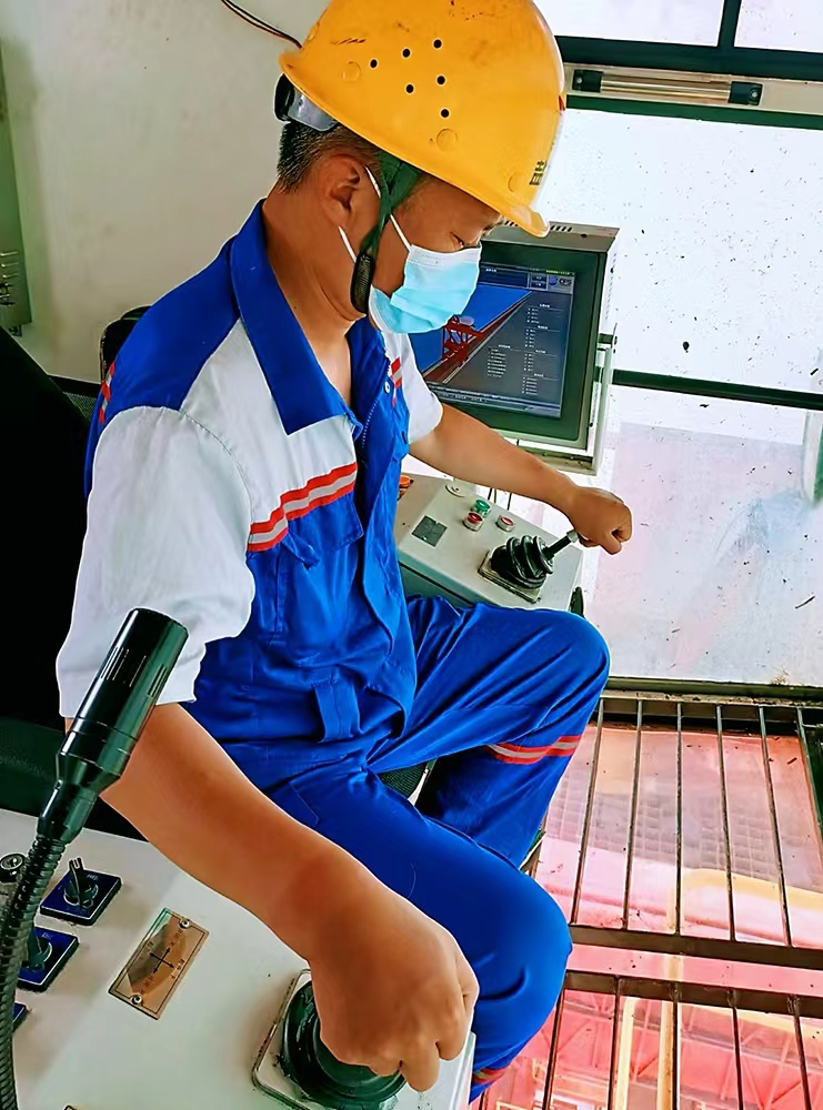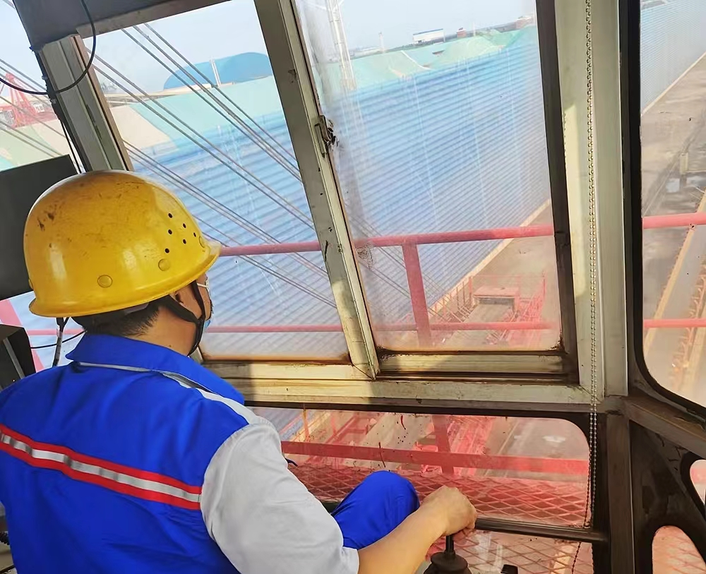我的“座驾”是卸船机。我和搭档勇挑重担,接卸远方来港的船舶,我们的任务是将货物从船舱内卸载至皮带机上。在卸船作业中,我们熟练运用掏舱作业、跑边料等操作技巧,控制每个舱清仓时间2-3小时,不断提升作业效率,缩短船舶滞留时间,服务广大客户。