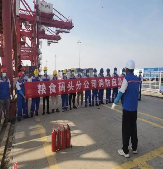 高温热浪持续,码头一线职工头顶烈日、挥汗如雨、坚守岗位,经受着高温的“烤”验,同时,高温也使得码头作业现场的火灾风险骤增,消防安全也面临着更大压力。为确保“三管三必须”安全生产工作落实落地,防患于未燃,近日,港口公司粮食码头分公司举行了消防演练。
