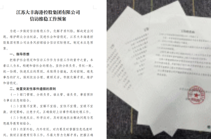大丰港区将学习宣传贯彻党的二十大精神作为当前和今后一个时期的首要政治任务,深刻领悟“两个确立”的决定性意义,从而更好扛起“保平安、护稳定、促发展”的光荣使命。大丰港区及各子(控)公司严格按照德信体育 的工作要求,建立健全公司信访维工作预案,明确目标、夯实责任,坚持分级负责、责权一致、统一协调、快速反应的原则,采取得力措施,及时控制,做到依法合理、兼顾灵活,积极化解矛盾,维护和谐稳定。