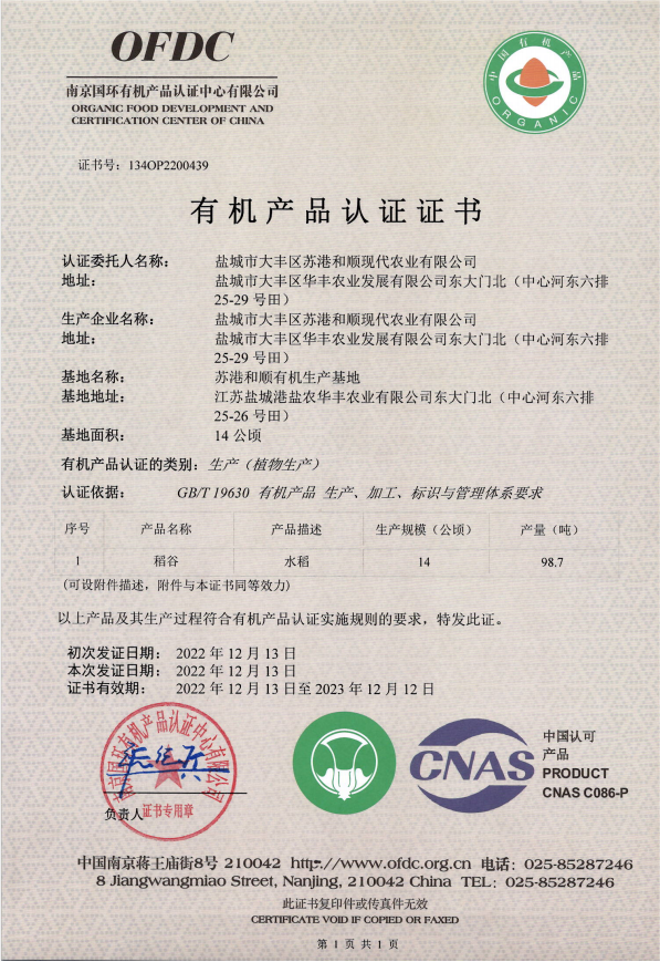 “耗时整整三年,我们终于成功了!”盐城港盐农循环农业公司稻谷种植基地负责人向我们介绍时难掩激动之情。近日,盐城港盐农循环农业公司种植基地产出的稻谷获得有机产品认证,看似不起眼的小谷粒却称出十足的分量。