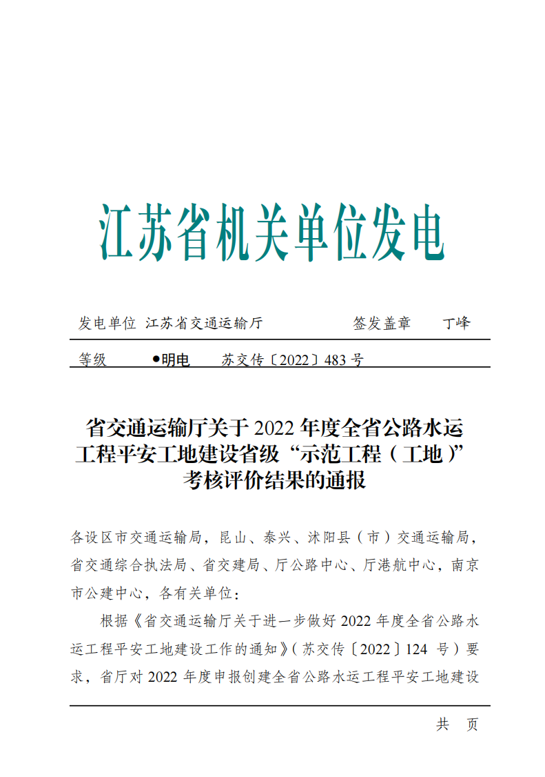 近日,省交通运输厅发布2022年度全省公路水运工程平安工地建设省级“示范工程(工地)”考核评价结果,灌河口5万吨级航道整治工程2个疏浚标段获评2022年度江苏省公路水运工程平安工地建设省级“示范工地”。
