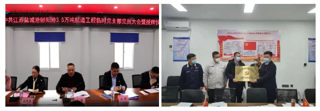 项目管理公司坚持党建工作围绕中心做、支部建设跟着项目走,先后成立了射阳港3.5万吨航道工程临时党支部、响水港5万吨航道工程临时党支部,开创了德信体育 建立临时党支部的先河,让党旗始终飘扬在项目阵地上。