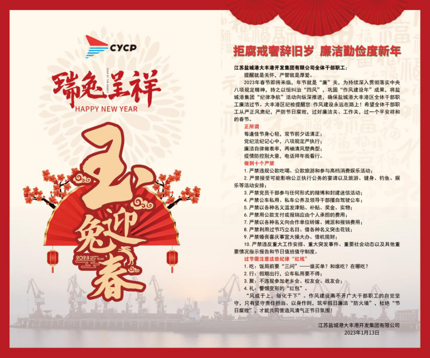 为营造春节前后风清气正、平安祥和的良好氛围,大丰港开发集团纪检紧盯节前、节中、节后重要环节,打好节点“四风”五步走组合拳。