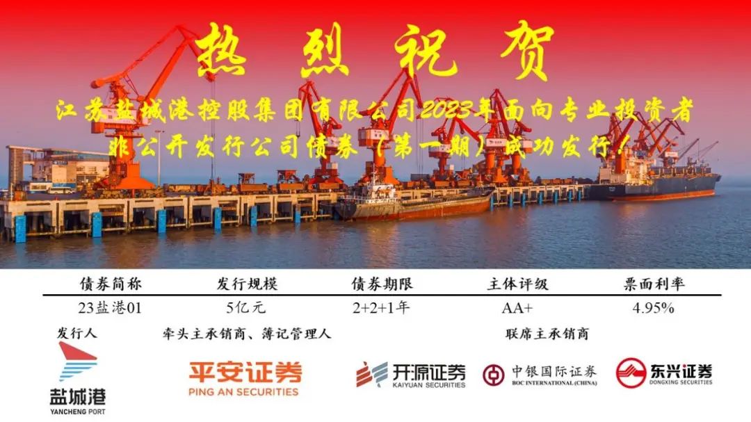德信体育 作为我市港航事业发展的中坚力量,在市委、市政府的坚强领导下,坚决扛起“架起盐城走向世界的海上大通道”的时代使命,争当服务经济发展的先行军,勇做盐城向海发展的主力军,加快构建沿淮河生态经济带和环黄海生态经济圈“一带一圈”重要节点枢纽港格局,持续为盐城经济社会发展贡献港口力量。本次私募公司债的发行严格按照集团党委对于融资3个“334”的目标要求,是集团调优资产结构、优化资金配置的显著成果,为集团“十四五”期间服务能级提升提供有力的资金保障。