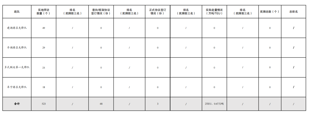 活动开展以来,累计拜访客户数量523家,签订意向/框架协议数量48份,签订正式协议3份,实际走量0.67万吨、2TEU。