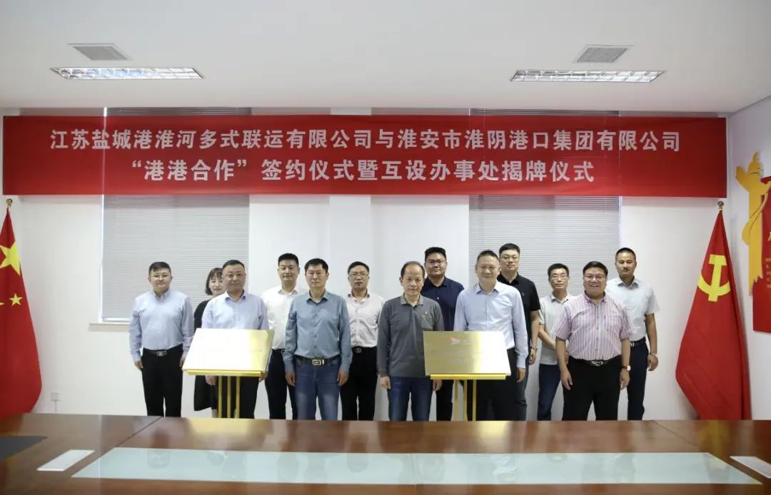 6月1日下午,新时代“南征北战闯市场”百日攻坚活动淮河公司与淮阴港口集团“港港合作”签约仪式暨互设办事处揭牌仪式成功举行,本次合作拉开了盐城港与淮河生态经济带沿线又一重要港口的合作序幕,标志着盐城港深入融合淮河生态经济带再显新作为,集团党委委员、纪委书记周旭东,集团党委委员、副总经理陈正华,淮河多式联运主要负责同志,集团生产运营部相关负责同志参加。