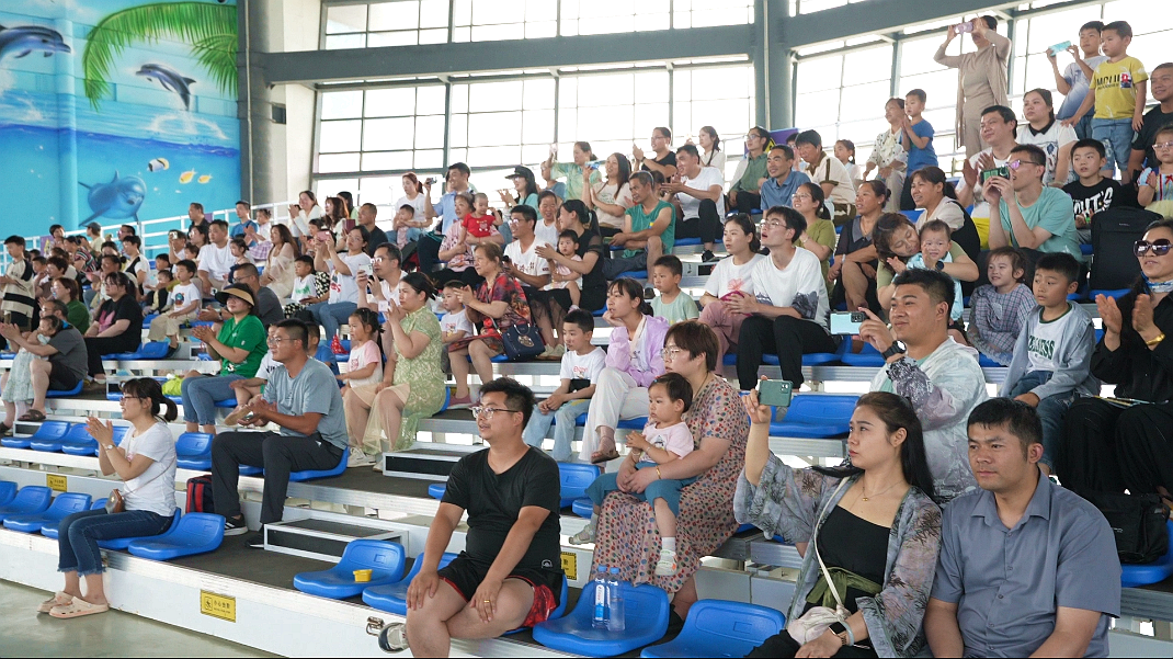 在海洋世界里,可爱的海豚在驯养员的指挥下尽情地舞动着,从水中一跃而上而又轻轻落入水中,展现着灵活的身姿。海豚的精彩表演和与观众的亲密互动,赢得游客阵阵喝彩和掌声。