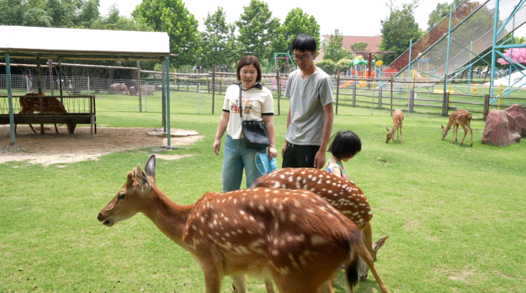 在盐城港动物园,长颈鹿惬意地享受小朋友投喂的美食,羊驼、梅花鹿等动物园的小明星们也对小朋友们的到来期待不已。镇园之宝的国宝大熊猫引得入园游客前来一一打卡,它们悠闲地吹着冷气吃着竹子,让游客很是羡慕,小朋友们更是目不转睛,久久不愿离开。