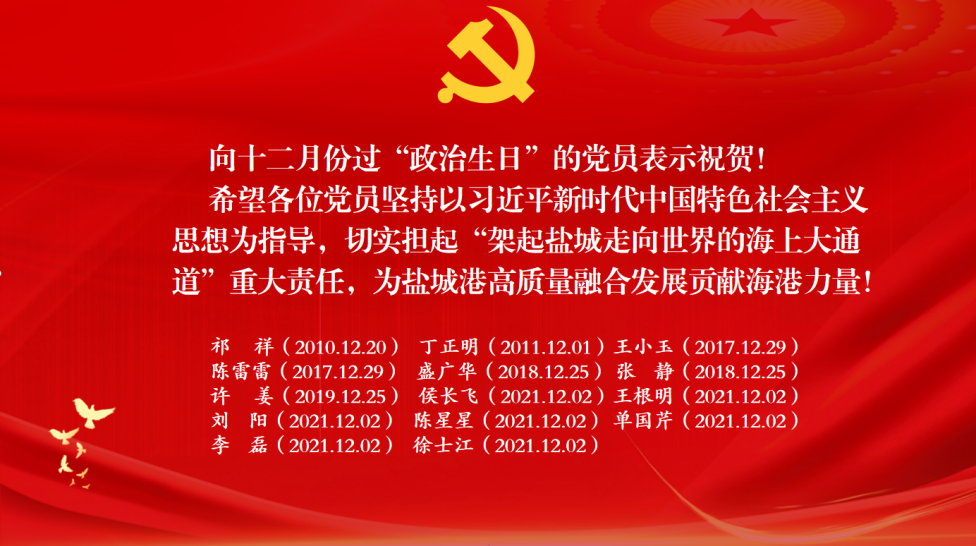 一个承诺,一颗初心,一生信仰,我心向党,初心永挚。射阳港区全体党员干部将永葆共产党员的政治本色,坚定信仰铸忠诚,立足岗位创新功。在新的一年里。射阳港区党总支也将用活“政治生日”形式,与支部书记上党课、实境教育相结合,让全体干部职工感受到集团党委、港区党组织的温暖关怀。