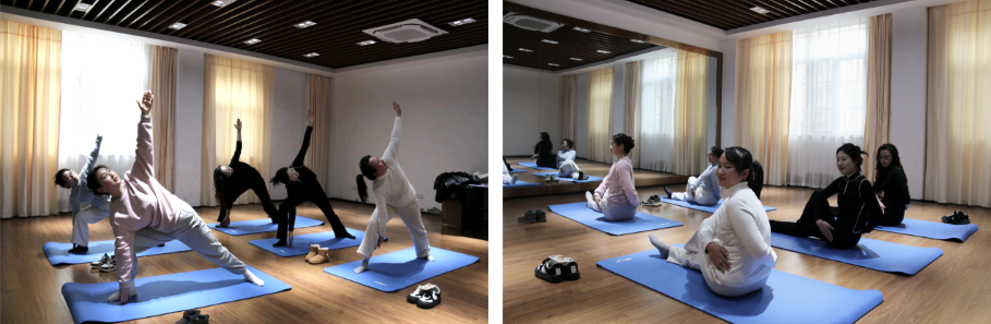 大家时而曲腿、时而展臂