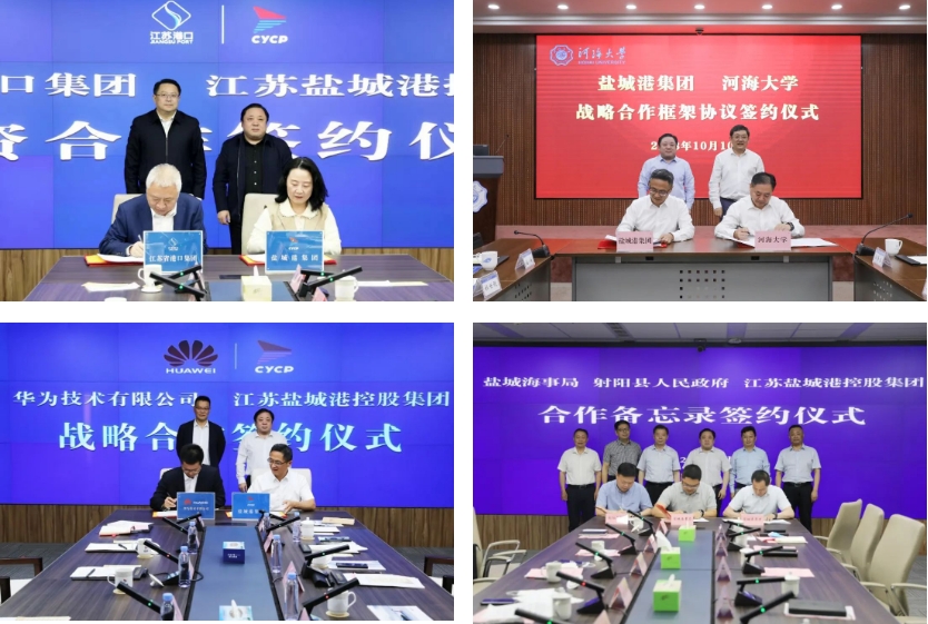 依托联动共赢的全方位合作,盐城港坚持“合纵连横”,以合作促提升、求发展、谋跨越,共建一体化高质量融合发展新生态。携手“政港企校行”合作伙伴,围绕“江海河联动、港产城协同、产学研融合”的目标,聚焦服务临港产业发展,持续加强科技成果转化,着力推动港口转型升级,全面深化人才队伍建设,切实为集团高质量发展增添新动能。