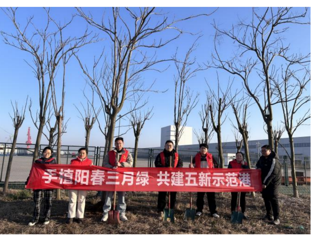 盐城港射阳港区开展以“手植阳春三月绿,共建五新示范港”为主题的义务植树活动,组织团员青年志愿者对港区现有绿植绿化进行补种。草木蔓发,春山可望。此次义务植树活动是射阳港区深入践行绿色发展理念、建设“绿色港”的生动体现。今后,射阳港区将以习近平生态文明思想为指导,围绕集团“五新示范港”建设要求,久久为功,在绿色低碳发展新赛道上展现青年力量。