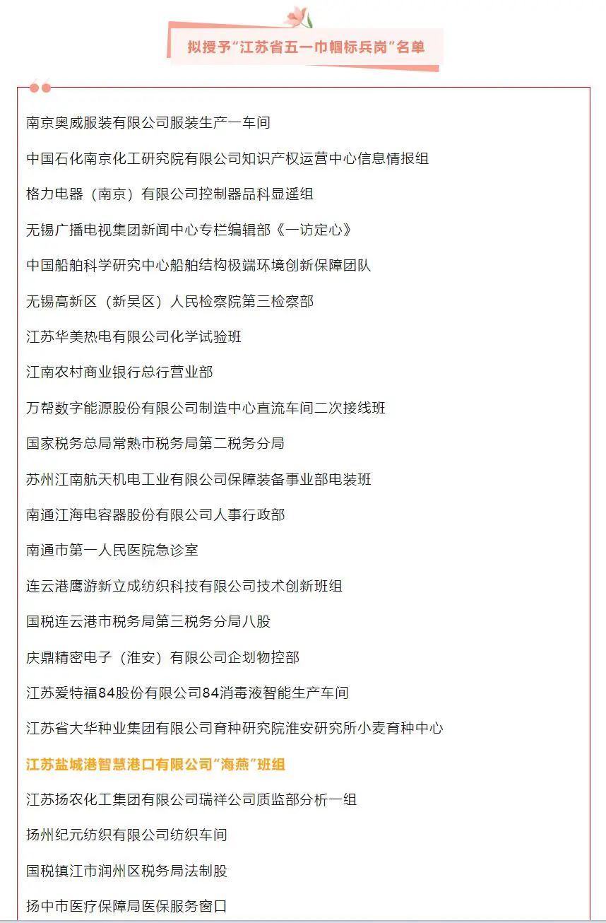 江苏盐城港智慧港口有限公司“海燕”班组荣获“江苏省五一巾帼标兵岗”!!!