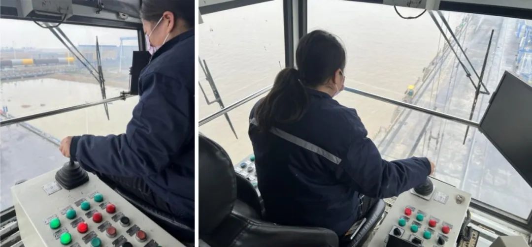 事实上,这支巾帼小队的不易并非仅限于此。每天通过陡峭的几百个台阶,爬进“门机”驾驶室就不是一件容易的事;每个班次几乎都需要连续工作12个小时,为保障作业效率,司机们只能在驾驶室内解决午餐,强度之高让很多男司机都望而却步。尽管如此,她们从未退缩,从未抱怨,只是默默地坚守在自己的岗位上,用实际行动诠释着“巾帼不让须眉”的精神,是最耀眼的“她”。