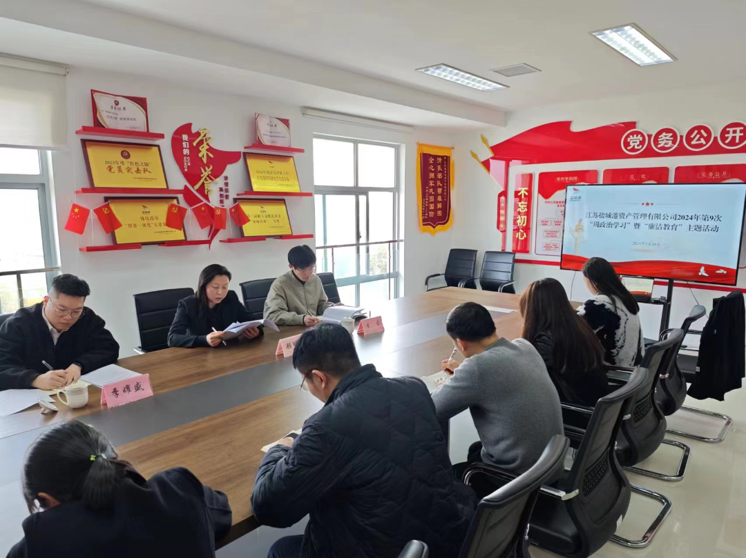 资产公司党总支开展节前“廉洁教育”主题学习活动,专题学习《中国共产党廉洁自律准则》、《公职人员政务处分法》等法律法规,并开展集体廉政谈话,教育引导全体党员遵守党的纪律,进一步锤炼党性、纯洁党风、严明党纪。