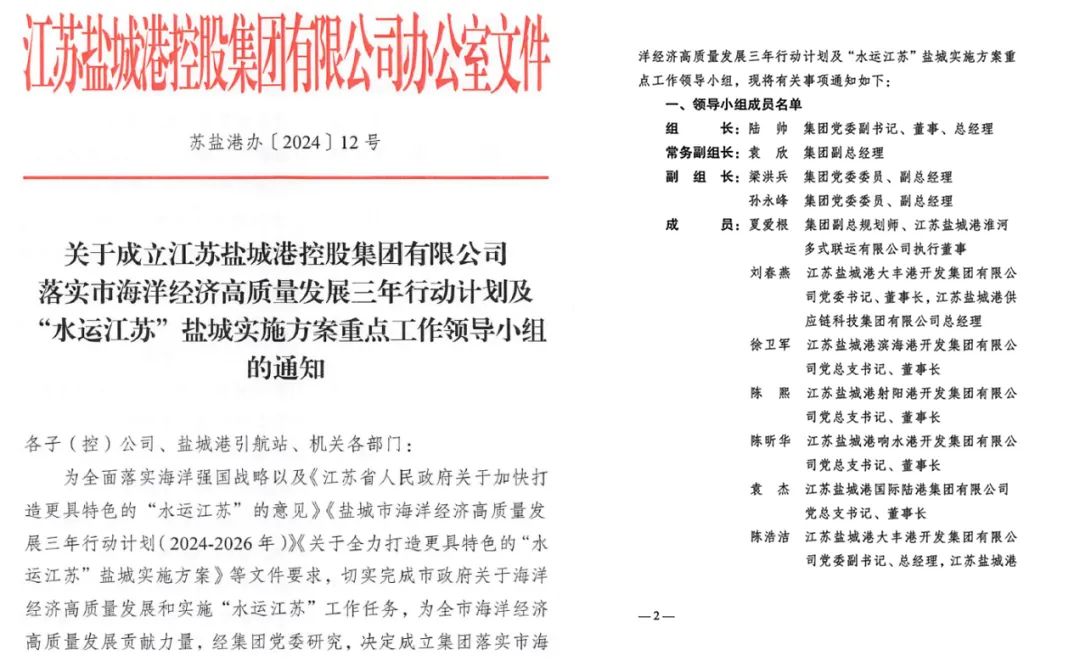 2月3日,集团发布了《关于成立德信体育(中国)官方网站 落实市海洋经济高质量发展三年行动计划及“水运江苏”盐城实施方案重点工作领导小组的通知》,领导小组下设一办两组,明确各项工作责任单位和责任人。3月2日,工作领导小组召开第一次调度会议,对各项工作进行了系统部署,深入推进海洋经济高质量发展和水运江苏重点工作。