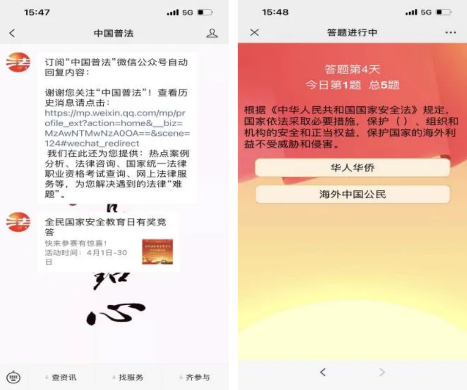 组织参与“全民国家安全教育日‘4·15’普法宣传答题”活动。