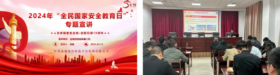 滨海港区与盐城边检开展了“总体国家安全观·创新引领10周年”2024年“全民国家安全教育日”专题宣讲宣传活动。