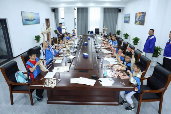 同学们带着好奇的心,来到了自动化集装箱堆场,堆场外,一群群麋鹿等着同学们的到来,精心准备的望远镜拉近了同学们与麋鹿的距离。在集装箱堆场指挥中心,同学们观看了现场操控,偌大的机器臂膀在工作人员的操作下精准落位。让他们亲眼目睹堆积如山的集装箱和像变形金刚一样庞大的港口机械,感受着现代化的港口设施和先进的技术,直面大国重器的震撼,了解它们背后承载的故事与贸易的力量,同学们也因此对自动化堆场表现出浓厚的兴趣。随后,前往研学教室体验模型组装。“
