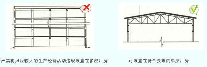 (十三)严禁将风险较大的涉及可燃性粉尘、危险化学品储存、高温熔融金属等生产经营活动违规设置在多层厂房中。