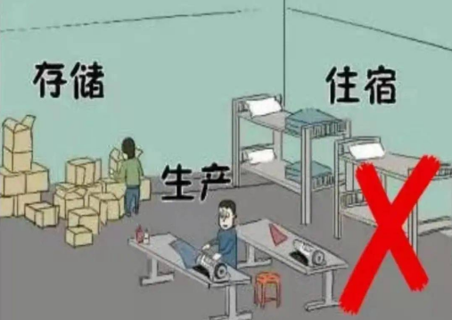 不准将生产经营场所、仓库、宿舍等合并设置,形成“三合一”“多合一”情形;