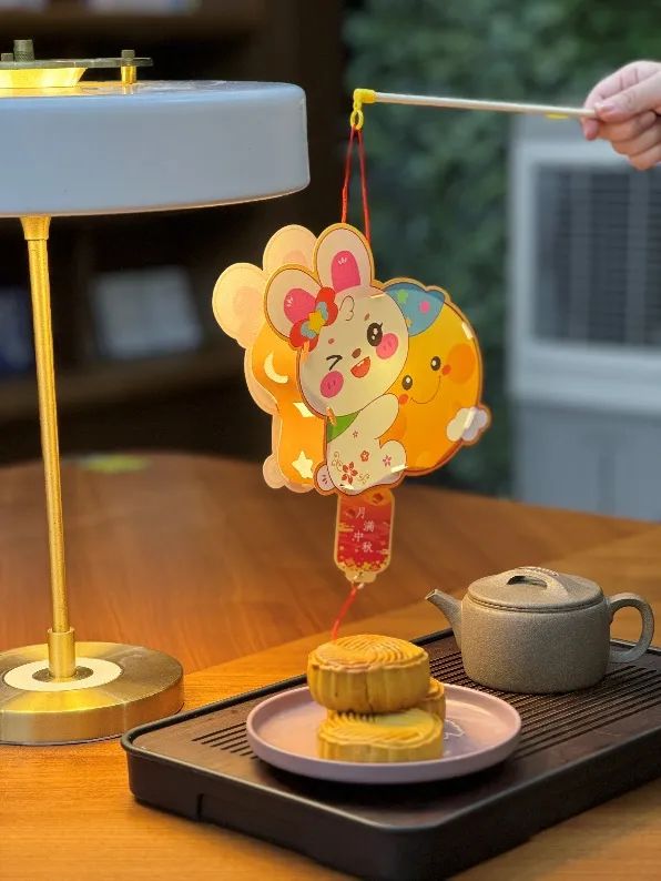 系上流苏绳,穿上灯带,扣入玉兔,大家认真制作着属于自己的花灯,一个个俏皮可爱的古风灯笼就制作成型了。制作玉兔花灯环节让组员们亲自动手体验了文化遗产的魅力,不仅展示了组员们的创造力,也体现了对传统文化的传承与尊重。灯笼制作完成后,所有参与人员在花灯的映照下合影留念,留下了这个温馨时刻的美好记忆。