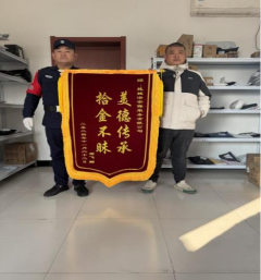 2024年11月20日晚,港航服务中心保安员徐成东在停车场巡逻时捡到一个皮夹,并在第一时间交至保安公司办公室。打开发现皮夹内有现金3000余元及各种证件、银行卡等,为尽快找到失主,办公室立即与当地派出所联系,通过派出所核对皮夹内相关证件,很快找到了失主顾先生。顾先生十分欣喜皮夹能失而复得,为了表达自己的感激之情和对盐城港保安员工作的认可,顾先生特意赠送锦旗一面。
