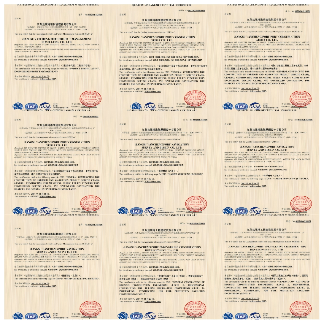 港湾建设集团高度重视本次体系认证工作,聘请专家老师对质量管理体系进行检查指导,通过结合各公司实际情况,对照各项标准,进行内部制度文件深度梳理,做到查漏补缺、融会贯通,进一步推进再认证工作。同时,邀请评审机构专家组对环境、职业健康安全管理体系进行审核评价。审核专家组通过查阅文件、现场检查、沟通询问、抽样验证等方式,对公司的环境及职业健康安全管理体系运行的充分性、适宜性和有效性进行了全面客观的审核评价。专家组一致认为体系运行符合标准要求、管理规范,同意通过资质认证。