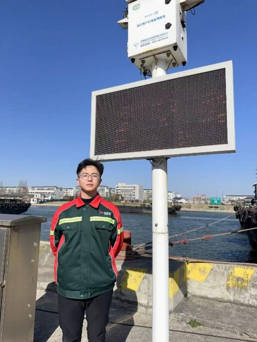我是盐都水上服务站成员,负责盐都水上服务站运营管理工作,为停靠船舶提供岸电、岸水、船舶污染物接收等服务,对扬尘环境实时监测,确保环境保护零污染。
