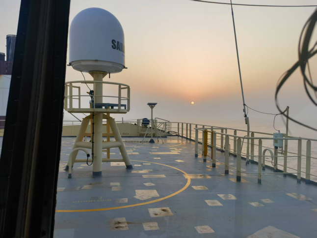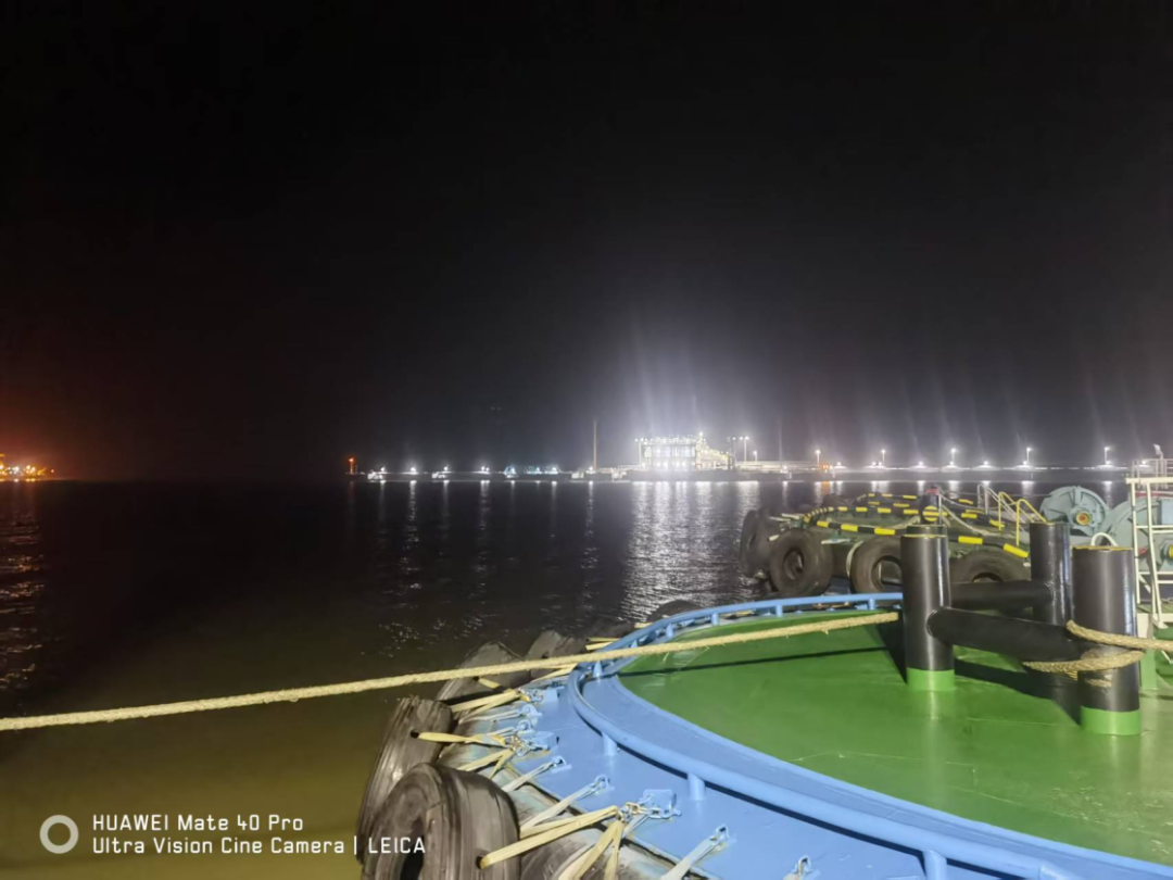 面对“晨昏蒙影”特殊时段(黎明前光线昏暗期),引航员提前1小时登轮,与船长反复核对潮汐、流速和船舶操纵特性。在朝阳初升的关键窗口期,引航员通过精准操控,在大马力拖轮协同配合下,克服船舶惯性、风流压差等技术难点完成精准靠泊。