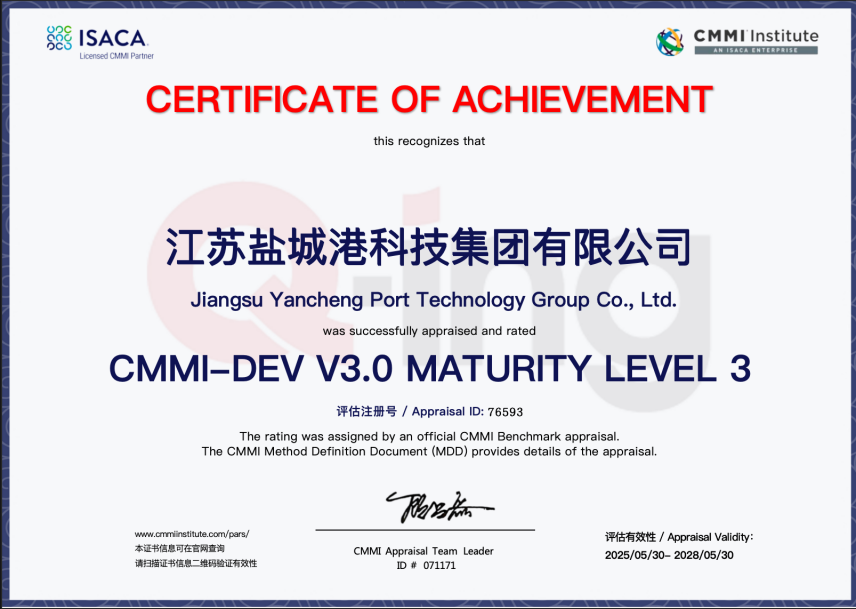 CMMI认证是国际公认的衡量企业软件开发过程成熟度与项目管理水平的权威标准。科技集团凭借在项目管理、质量控制和过程优化等方面创新突破,成果获得认证,为公司服务质量进一步提升和突破提供了有力支撑。