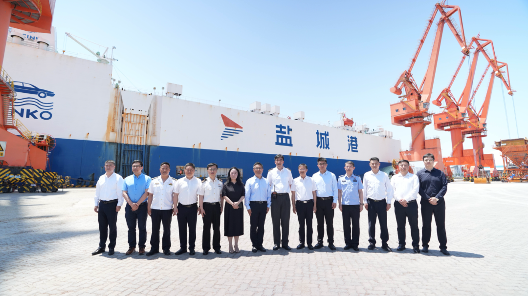 黄海新区、滨海县、德信体育 主要领导和相关负责同志,市“一关两检”相关负责人亲临码头现场,一同观看了汽车滚装全流程作业。