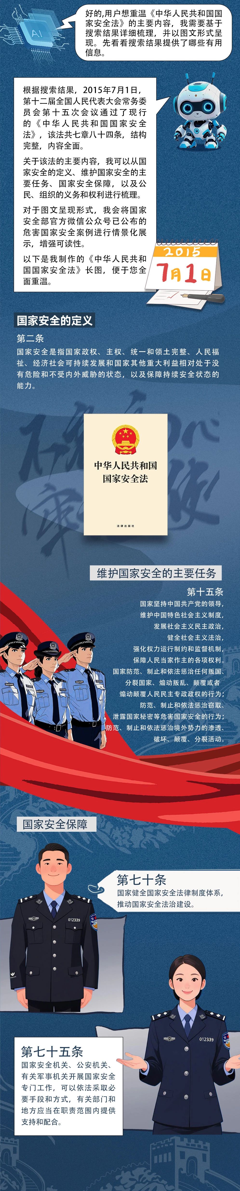 今年是《中华人民共和国国家安全法》颁布实施10周年。十年来,该法有力保障了总体国家安全观贯彻落实,有力促进了国家安全体系和能力现代化。下面,让我们一同回顾该法主要内容,共同增强国家安全意识,凝聚起全社会维护国家安全的强大合力。