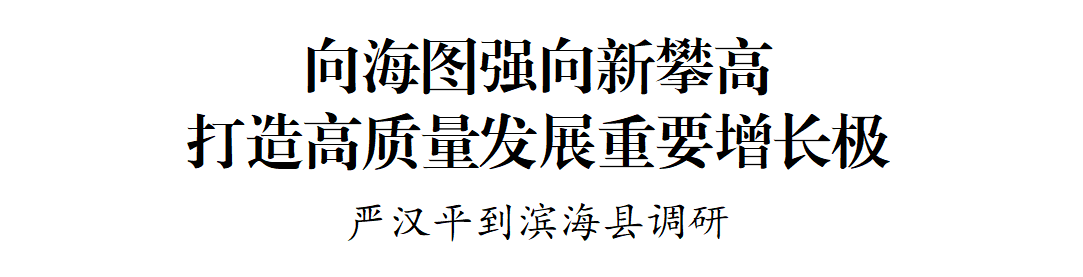 8月30日,市委副书记、代市长严汉平到滨海县调研,强调要深入学习贯彻习近平总书记对江苏工作重要讲话精神,牢牢把握高质量发展首要任务,抢抓江苏沿海发展等战略机遇,坚定向海图强,奋力向新攀高,加快打造全市高质量发展重要增长极。