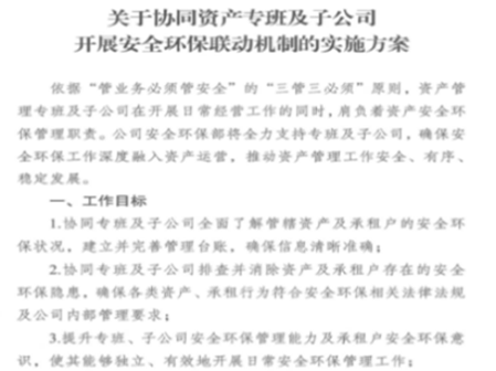 严格遵循“管业务必须管安全”的原则,将安全环保管理全面嵌入资产运营全过程。安环部以“服务、赋能、保障”为工作导向,与各专班及子公司条线人员建立“一对一”挂钩服务机制,通过开展现场隐患排查、规范管理台账、完善安全制度、组织应急演练等实操措施,切实提升条线协同效能。在技术层面,提供专业咨询与风险评估协助;在资源层面,共享安全防护物资、法律法规案例及第三方检测评价资源;在服务层面,建立常态化沟通机制和专人指导制度,针对承租户明确租赁安全责任、加强政策宣贯、协助开展隐患自查,并建立健全动态信息档案。此外,每月定期组织联动机制会商,持续推动资产安全环保管理向“标准化、精细化、长效化”迈进。