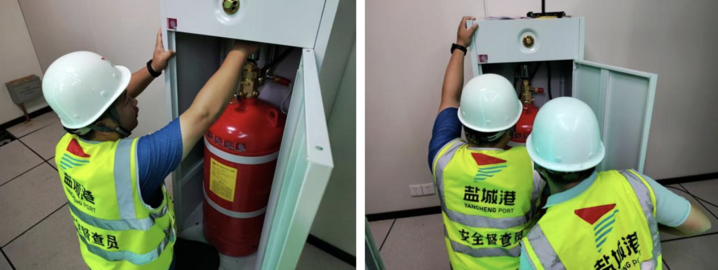 本次检查深度融合“人防+技防”双重手段,检查小组运用红外扫描仪、压力传感器检测仪等先进设备,对灭火器、消防栓、烟雾报警器等关键设施进行了系统性检测。在码头现场,检查组重点查验了门机、微机房柜及相关电气设备的自动灭火系统,通过模拟火灾信号全面测试系统响应速度,确保火情发生时能够迅速响应。在物流园区,针对仓库电气线路和防爆设备开展了地毯式排查,借助热成像测温技术精准识别潜在过热风险,坚决杜绝设备“带病运行”。