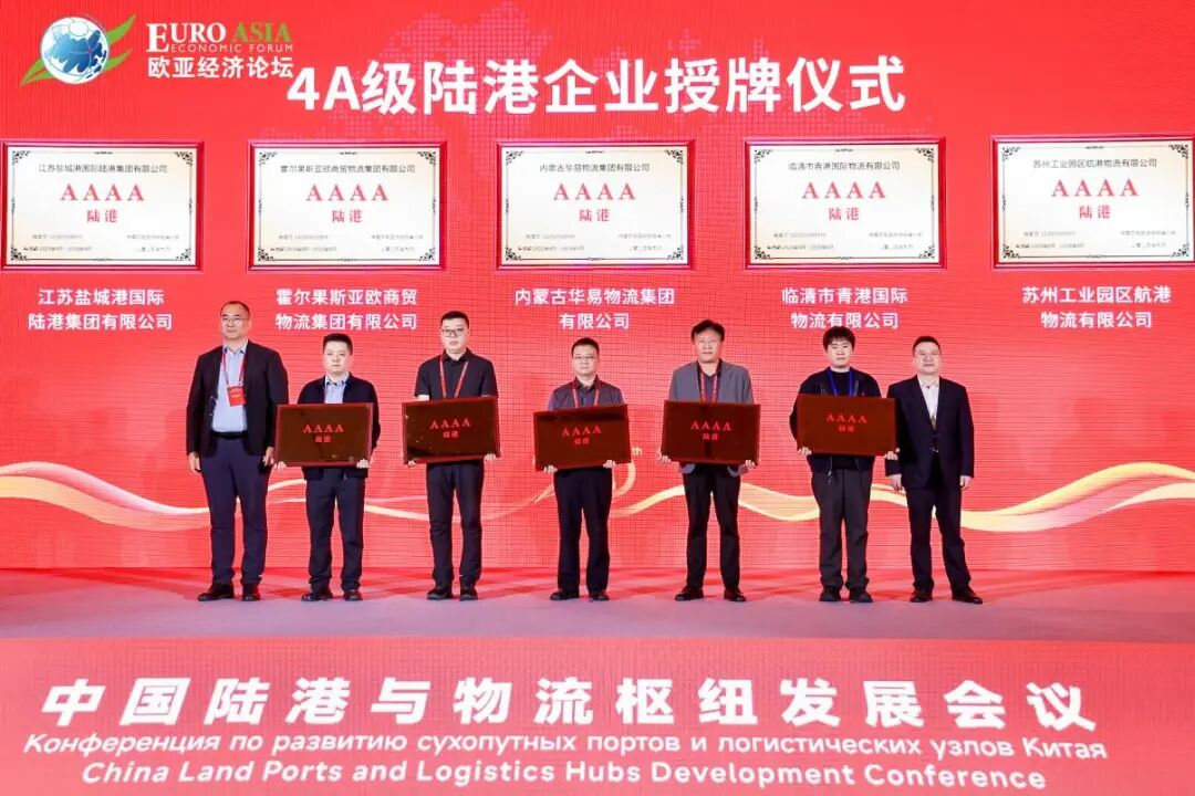 9月23日,“2025欧亚经济论坛暨中国陆港与物流枢纽发展会议”在西安举行,陆港集团凭借在多式联运领域的运营能力,成功通过中国开发区协会的严格评审,被正式授予“4A级多式联运企业”荣誉称号。