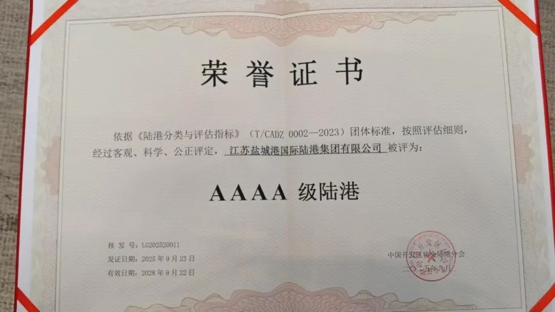 据悉,中国开发区协会开展的多式联运企业等级评定工作,旨在树立行业标杆,引导多式联运行业规范、高效发展,其评定标准涵盖基础设施、运营管理、服务能力、信息化水平、安全生产及社会责任等多个维度,审核严格,权威性高。此次获评,是对盐城港国际陆港集团近年来深耕港口、铁路、公路等多种运输方式高效衔接,持续优化物流组织模式,积极服务地方及区域经济发展的充分肯定与高度认可。