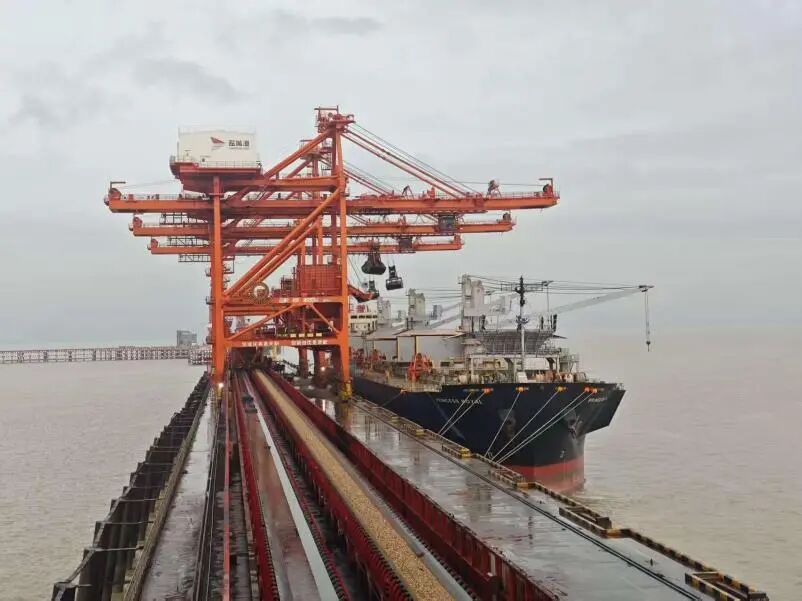 面对木片“质量轻、易飘散、易粘黏”的物理特性与皮带机系统首次适配的挑战,分公司超前谋划,组建专项技术攻关团队。通过多轮工艺论证和设备调试,精准优化皮带机张紧度、输送倾角等关键参数,采取“三机协同、分区作业”的科学生产模式,实现卸船机与皮带机系统的无缝衔接。在107小时的连续作业中,系统运行稳定高效,未发生任何堵料、撒漏现象,圆满完成4万吨木片接卸任务,翻开轻泡散货皮带机作业新的一页。