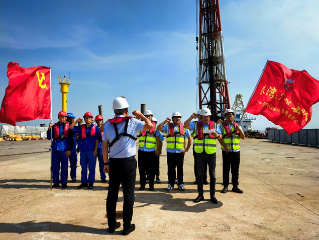 第一时间将集团会议精神传达至各项目部、各班组,构建“公司统筹+项目落实+班组执行”三级攻坚体系。通过悬挂横幅、张贴海报、召开班前会等形式,广泛宣传“百日攻坚”目标任务与重要意义,营造“人人谈攻坚、事事为攻坚”的浓厚氛围,推动全体干部职工将思想和行动统一到攻坚工作上来。严格遵循“三不变”原则,逐条梳理年度经营指标、项目建设节点、安全生产目标,制定“日跟踪进度、周复盘问题、月总结成效”工作机制,为每个项目建立“任务清单+责任清单+时限清单”,确保攻坚方向不偏、力度不减。同时,公司充分发挥党组织“红色引擎”作用,组建“百日攻坚党员突击队”,由班子成员带队下沉一线,进驻大丰港区重点项目现场,实行“一线办公、现场解题”,将党建力量与攻坚任务深度融合,以党员先锋模范作用带动全员攻坚热情。