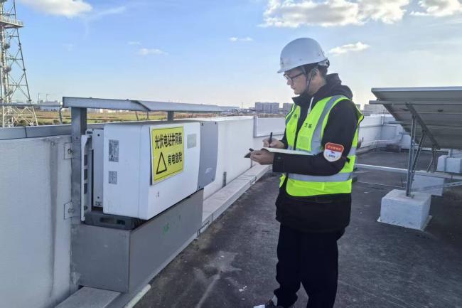 天色微明,运维组的成员们已整装出发。头戴安全帽,手持巡检记录本,借助接地摇表、红外测温仪等仪器在清晨的海风中细致排查光伏阵列的每一台设备、每一处接线盒、每一根电缆。他们穿梭于成片的光伏板间,目光如炬,不放过任何一处细微的异常、任何一丝潜在的问题,并结合巡视检查中发现的安全隐患第一时间进行消缺,确保设备可靠运行。每一次俯身检查、每一组数据记录,都关乎着港区绿色电力的稳定输出,关乎着新能源系统安全运行的底线。
