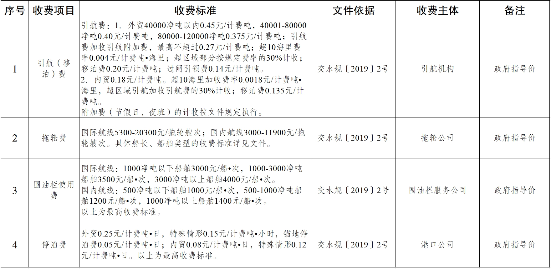盐城进出口口岸收费项目清单口岸经营服务性收费(政府定价和政府指导价部分)